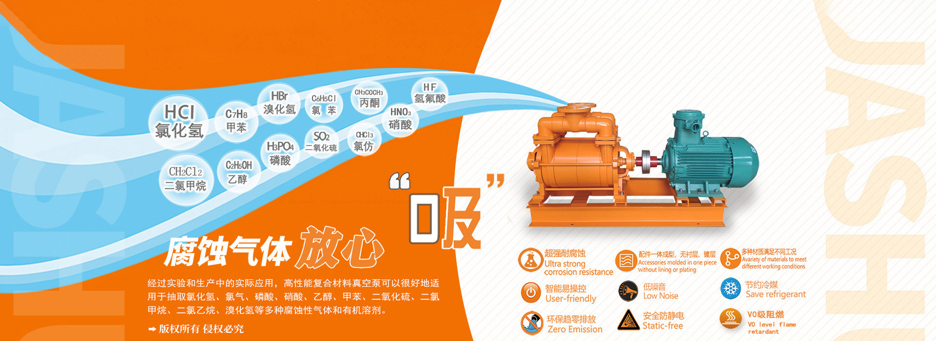 公司獨(dú)立研發(fā)的具有自主知識(shí)產(chǎn)權(quán)的多項(xiàng)專(zhuān)利產(chǎn)品 一耐腐蝕系列水環(huán)式真空泵。